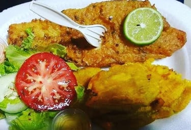 En El Rincón de Diana, ofrecemos auténtica comida afroantillana(costeña), destacando nuestros deliciosos platos de pescado y patacones rellenos, preparados con amor y tradición para brindarte una experiencia única.