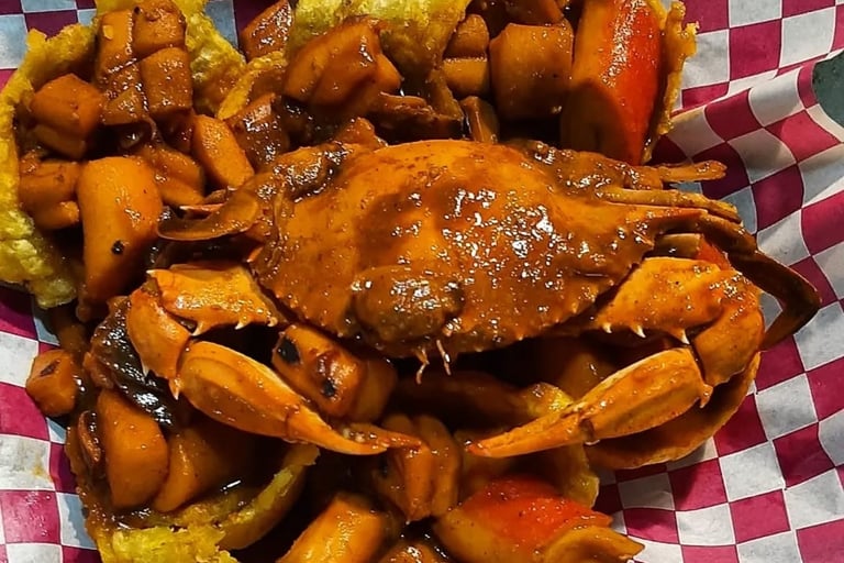 Disfruta de la auténtica comida Afropanameña con nuestros platos de mariscos frescos y patacones rellenos.